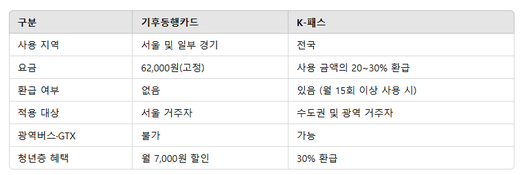 - 기후동행카드와 K-패스 비교