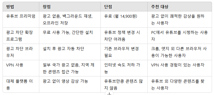 3. 유튜브 광고 없이 보기 – 방법 비교